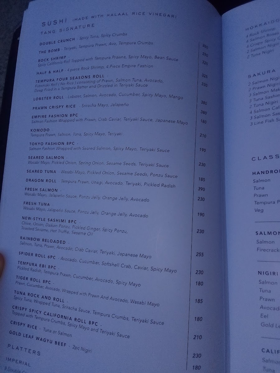 Introducing the Menu at TANG Asian Luxury Restaurant & Bar